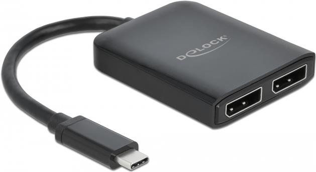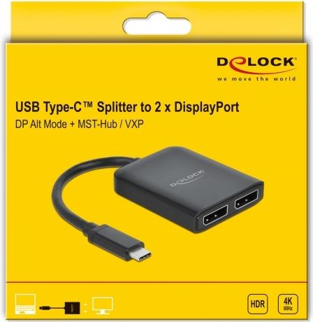 DeLOCK USB Type-C Splitter (DP Alt Mode) to 2 x DisplayPort MST / VXP - Video-Verteiler - 2 Anschlüsse |