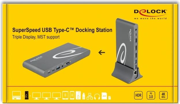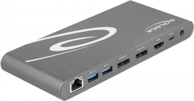 | Produktbeschreibung | DeLOCK USB Type-C DP 1.4 Docking Station Triple 4K Display - Dockingstation - USB-C 3.2 Gen 1 / Thunderbolt 3 - HDMI, 2 x DP - GigE |