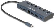 Die Delock USB-C-Dockingstation bietet eine vielseitige Lösung für den einfachen Anschluss verschiedener Geräte. Mit einer kompakten Länge von 28 cm und einer Reihe von Schnittstellen, darunter Netzwerk-, Audio-/Video- und mehrere USB-C-Anschlüsse mit Power Delivery, können Benutzer ihren Arbeitsplatz nahtlos erweitern. Genießen Sie 4K-Auflösung bei einer Bildwiederholfrequenz von 60 Hz, ideal für hochwertige Videoausgabe. Die Dockingstation unterstützt Funktionen wie HDR und DisplayPort Alt Mode und sorgt so dafür, dass jede Verbindung für optimale Leistung optimiert ist.