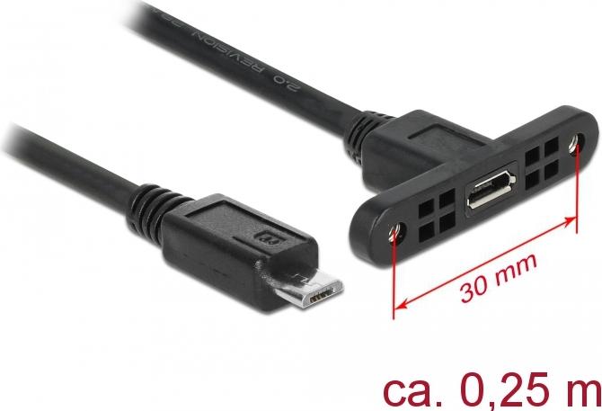 Delock - USB-Verlängerungskabel - Micro-USB Typ B (M) zu Micro-USB Typ B (W) Paneel montierbar - USB2.0 - 25cm - Schwarz (85245)