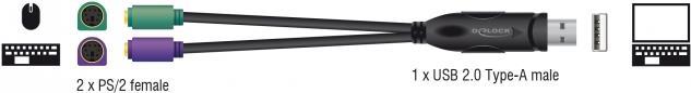 Produktbeschreibung Delock - USB-Adapter - USB zu PS/2 - 17 cm