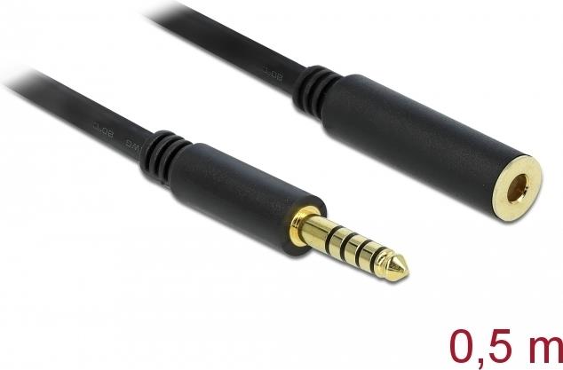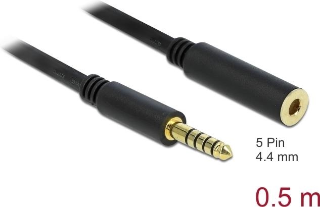 DeLOCK - Audioverlängerungskabel - Symmetrisches Stereo 4,4 mm (M) bis Symmetrisches Stereo 4,4 mm (W) - 0,5m - Schwarz (85795)