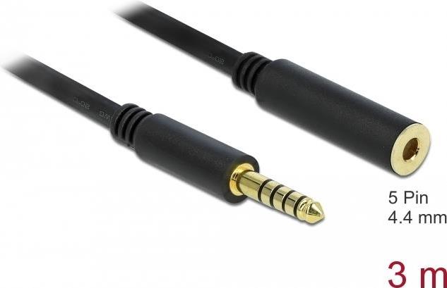 DeLOCK - Audioverlängerungskabel - Symmetrisches Stereo 4,4 mm (M) bis Symmetrisches Stereo 4,4 mm (W) - 3,0m - Schwarz (85798)