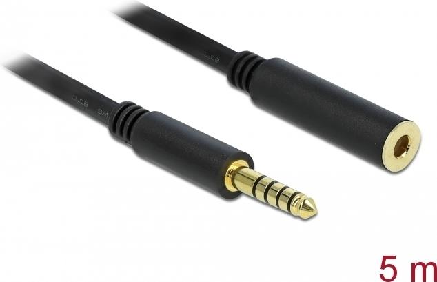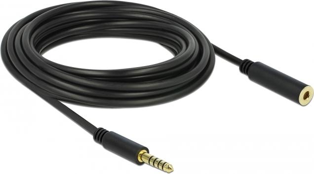 DeLOCK - Audioverlängerungskabel - Symmetrisches Stereo 4,4 mm (M) bis Symmetrisches Stereo 4,4 mm (W) - 5,0m - Schwarz (85799)