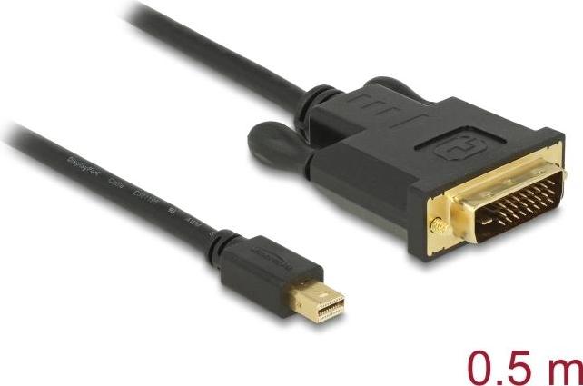 DeLOCK - Videokabel - Single Link - Mini DisplayPort (M) bis DVI-D (M) - DisplayPort 1,1 - 50cm - passiv, Daumenschrauben - Schwarz (83987) (geöffnet)