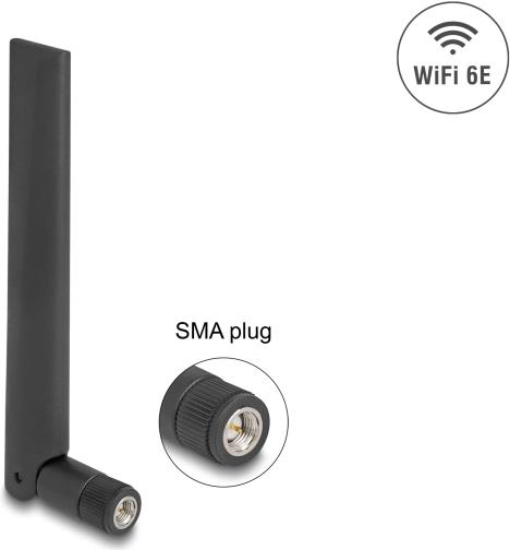 • Delock WiFi 6E Antenne SMA Stecker 3 dBi omnidirektional mit Kippgelenk schwarz (88399)