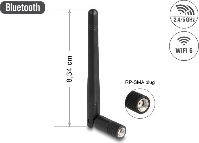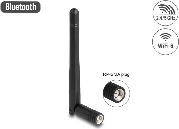 • Delock WLAN 802.11 ac/ax/a/b/g/n Antenne RP-SMA Stecker 2 dBi omnidirektional mit (90150)