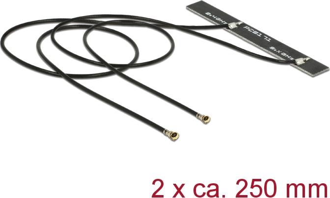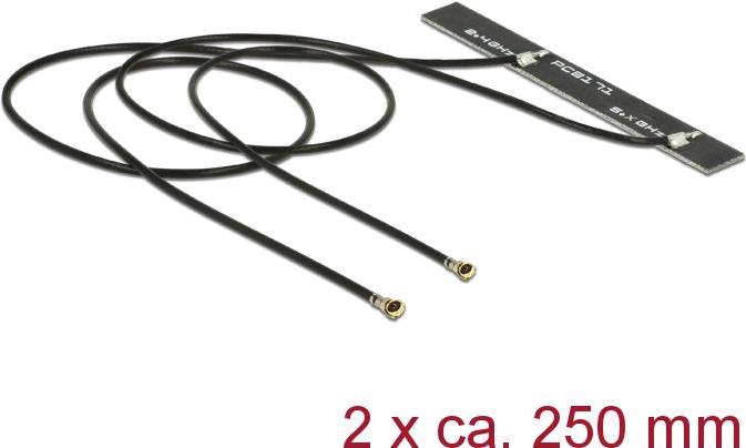 Delock WLAN 802.11 ac/a/h/b/g/n Doppelantenne 2 x MHF® 4L Stecker 3 - 5 dBi 1.13 2 x 25 cm PCB intern Klebemontage (89571)