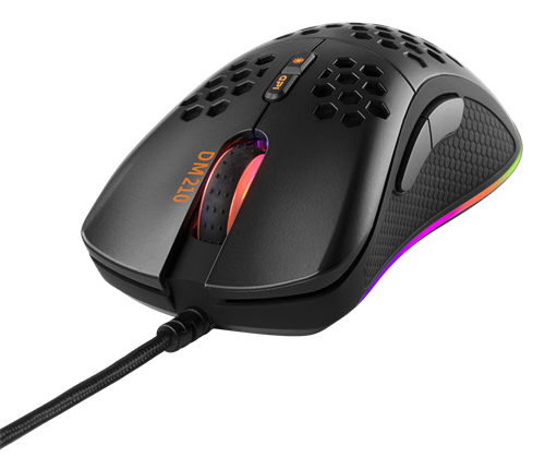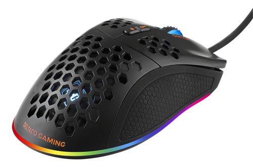 Deltaco DM210. Formfaktor: rechts. Geräteschnittstelle: USB Typ-A, Bewegung Auflösung: 6400 DPI, Tastentyp: Gedrückte Tasten, Knopfanzahl: 7, Scroll Typ: Rad. Farben der Beleuchtung: Blau, Grün, Rot. Energiequelle: Kabel. Produktfarbe: Schwarz (GAM-108)