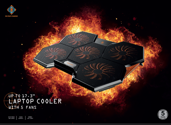 Deltaco Laptop Kühler 1000-1300 U/Min/ 5x140mm Lüfter (GAM-072)