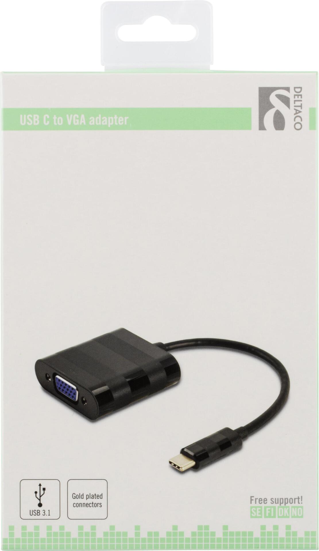 Deltaco USBC-VGA Videokabel-Adapter USB Typ-C VGA (D-Sub) Schwarz (USBC-VGA)