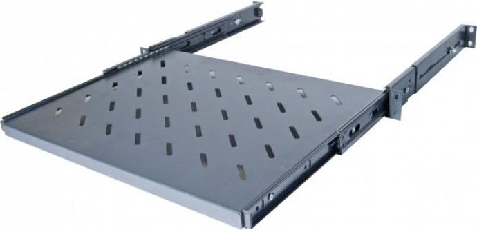 Dexlan 48,30cm (19") ausziehbarer Fachboden, 1HE, 550mm Tiefe, RAL 9005 schwarz zur seitlichen Befestigung an den 48,30cm (19") Profilen (755281)