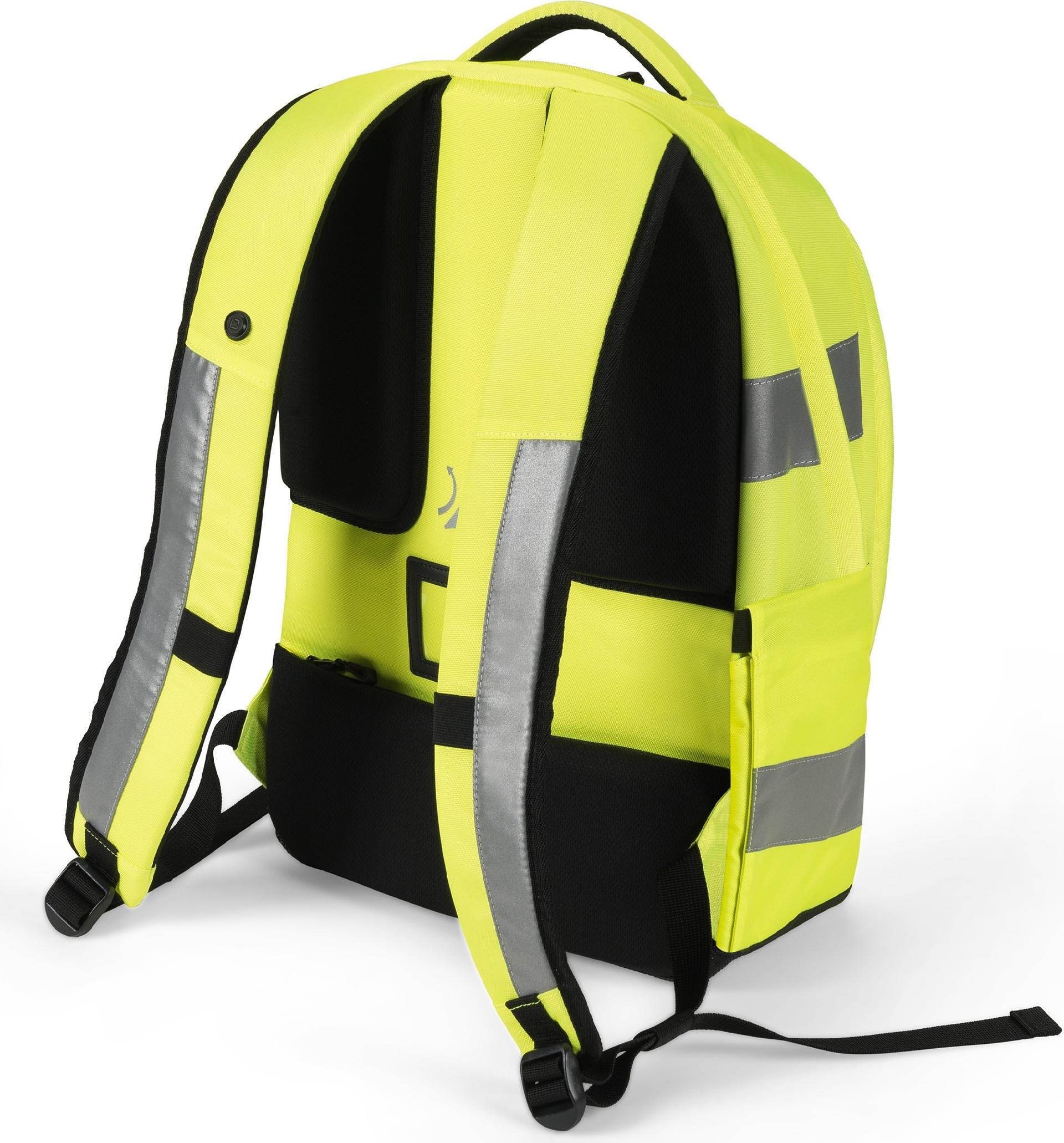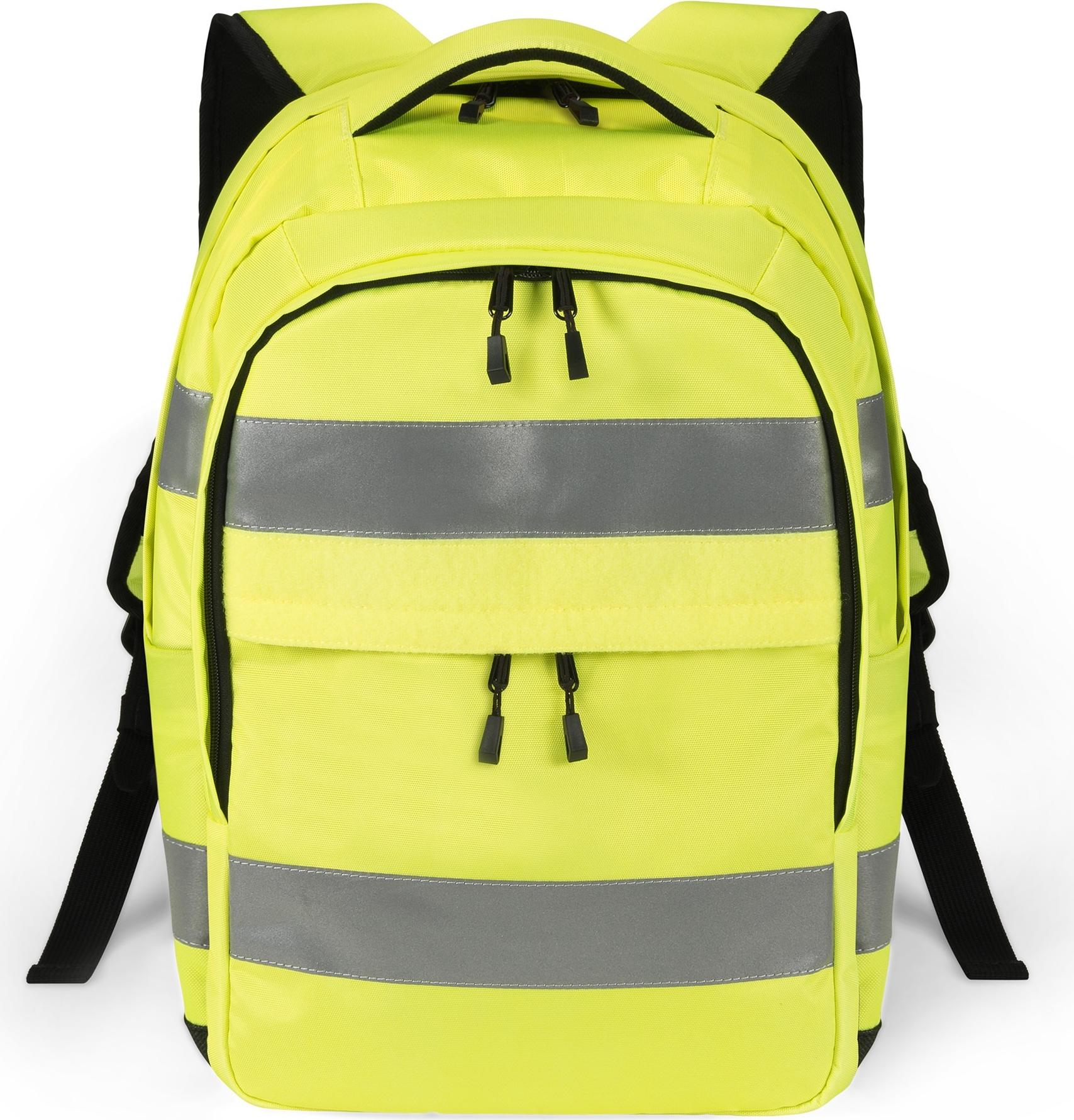 DICOTA bietet mit seinen High-Visibility-Rucksäcken eine zuverlässige Lösung für anspruchsvolle Arbeitstage im Freien. Alle Produkte erfüllen wichtige Beschaffungskriterien, wie Ergonomie, Langlebigkeit und Nachhaltigkeit. Höchste Qualität und Funktionalität treffen auf nachhaltige Materialien aus recycelten PET-Flaschen - zum Schutz der Mitarbeiter und der Umwelt. Durch die Verwendung von fluoreszierenden Stoffen und 3M-Reflexionsstreifen gemäß EN ISO 20471:2013 bieten die Rucksäcke eine hervorragende Sichtbarkeit und erhöhen so die Sicherheit bei der Arbeit im Außenbereich wie Baustellen und Wäldern sowie bei Rettungseinsätzen und auf dem Weg zur Arbeit. Das Außenmaterial ist wasserabweisend, zertifiziert nach EN ISO 4920, Level 4, und die mitgelieferte Regenhülle bietet zusätzlichen Schutz bei starken Regengüssen. Das Air-Flow-System am Rücken garantiert eine angenehme Luftzirkulation bei steigenden Temperaturen. Die verstellbaren Hüft- und Brustgurte sorgen für eine angenehme Gewichtsverteilung und beste Ergonomie. In den 25 Litern Stauraum lassen sich sowohl Arbeitsutensilien als auch persönliche Dinge effizient verstauen. Das Notebook ist durch das bewährte Fit-All-System bestens geschützt. Zusätzlich gibt es Fächer für Tablet, Smartphone, Powerbank, Taschenlampe etc. sowie universelle Reißverschlussfächer. Im Fach auf der Rückseite können Wertsachen sicher verstaut werden, um Diebstahl vorzubeugen. Ein Visitenkartenfach und der Klettbereich auf der Rückseite ermöglichen es, den Rucksack mit einem Namens- oder Logoaufnäher zu personalisieren. Der Rucksack Hi-Vis 25 Liter bietet ein Maximum an Platz, Komfort und Sichtbarkeit und ist perfekt für einen anspruchsvollen Arbeitstag im Freien. Er verbessert auch die Sicherheit bei der Arbeit und hilft, Unfälle zu vermeiden.