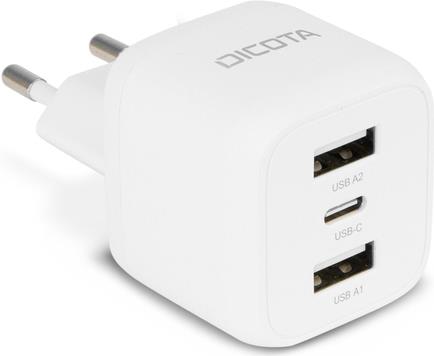 DICOTA - Netzteil - kompakt, Laptop - 32 Watt - 3 A - 3 Ausgabeanschlussstellen (24 pin USB-C, 2 x USB) - weiß - Europa (D32069)