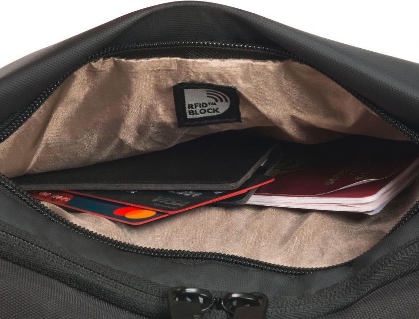 Gelebte Nachhaltigkeit mit gutem Gewissen - hergestellt aus wiederverwertetem PET, schonen die Accessories Pouches MOVE die Umwelt. Ein konsequentes Recycling hilft, Ressourcen zu schonen und dient bei DICOTA als Basis für innovative Lösungen. Im Hauptmaterial der Pouches erhalten 3 PET Flaschen ein neues Leben - ohne Kompromisse in Bezug auf Qualität, Funktionalität und Design. Die Taschen bietet ausgezeichneten Schutz für Ihr Zubehör und sind bequem und leicht zu tragen. Entwickelt für den täglichen Einsatz. Ausgestattet mit praktischen Funktionen, die Ihnen das Leben erleichtern.Reisepass, Bahnticket, Smartphone, Ladegerät, Kabel, Powerbank, Adapter, Kopfhörer, Schlüssel, Spielkonsole, Spiele, Controller und mehr. Mit der Accessories Pouch MOVE geniessen Sie sorgenfreies Reisen in dem Wissen, dass alle Ihre Habseligkeiten perfekt organisiert und immer in Reichweite sind. Das durchdachte Innenleben mit einer Variation von Taschen, Reißverschlussfächern und flexiblen Fixiergurten bietet Stauraum für alles, was Sie auf Ihrer Reise nicht missen möchten. Das RFID Reissverschlussfach schützt vor unerwünschten Scans und sorgt dafür, dass Ihre Karten und persönlichen Daten privat und vertraulich bleiben. Wenn Sie im Flugzeug reisen, können Sie den Schlüsselhalter als Aufhänger nutzen, um die Tasche am Sitz vor Ihnen zu befestigen und so mehr Platz zum bequemen Ausruhen Ihrer Beine schaffen. Neben der hohen Funktionalität überzeugt das Pouch auch in puncto Design und Langlebigkeit durch eine spannende Kombination aus hochwertigen Polyester-Materialien aus recyceltem PET.Hauptmerkmale