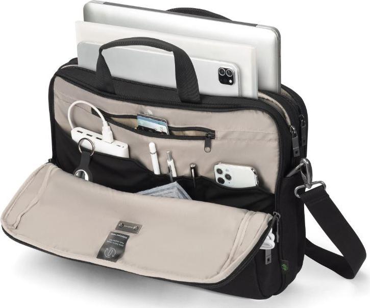 Die Tasche ist aus strapazierfähigem 900D-Polyester gefertigt und bietet Schutz durch ihre Schaumstoffpolsterung und High-Density-Schaumstoff (HDF). Der Reißverschluss schützt den Inhalt, während in der Fronttasche wichtige Dinge wie Dokumente, Stifte und mobiles Zubehör griffbereit aufbewahrt werden können. Die DICOTA Top Traveller FIVE verbindet Funktionalität mit einem eleganten Design und ist damit der ideale Begleiter für Berufstätige, die viel unterwegs sind.