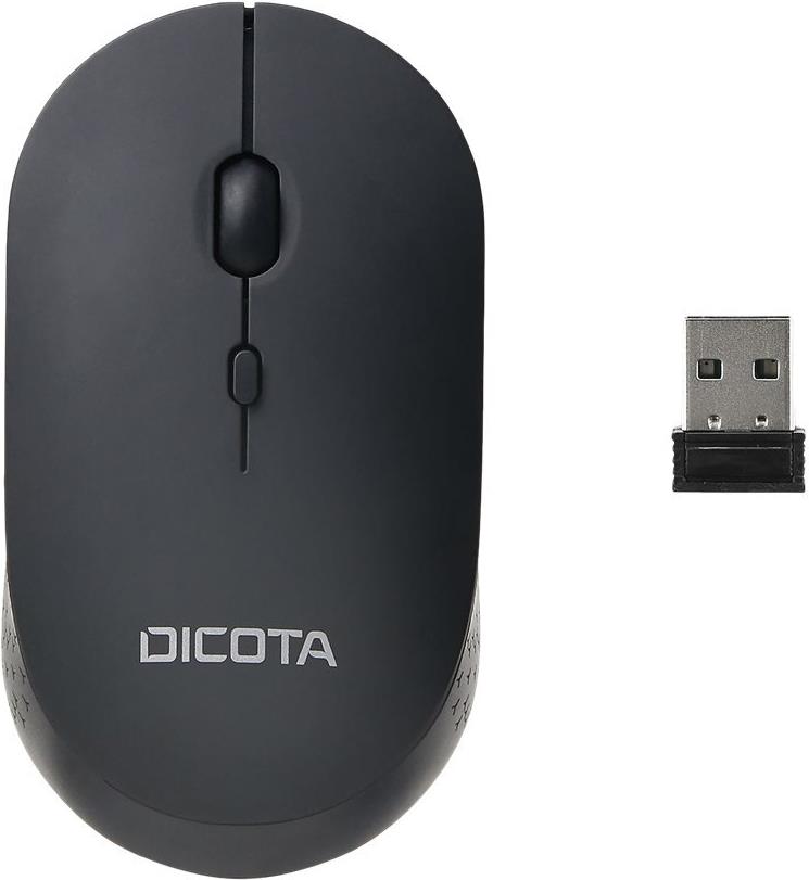 DICOTA Silent - V2 - Maus - rechts- und linkshändig - optisch - 3 Tasten - kabellos - 2,4 GHz - kabelloser Empfänger (USB) - Schwarz (D32003)