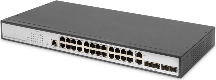 Die DIGITUS® Gigabit Ethernet Layer 2 Switches mit 24 x RJ45 Gigabit-Ports und 4 Uplink-Ports sind auf mittelgroße bis große Netzwerksysteme ausgelegt. Für die Uplink-Ports haben Sie die Auswahl aus 2 x SFP/RJ45 Combo-Ports und 2 reinen SFP-Uplink-Ports. Smart-Features, welche Ideal für simple QoS-/CoS - Anwendungen sind und die 19'' Montagemöglichkeit machen eine unkomplizierte Einbindung in Ihr Netzwerk möglich. Diese Switches sind eine gute Wahl, um die Leistung und Effizienz Ihres Netzwerkes zu verbessern.