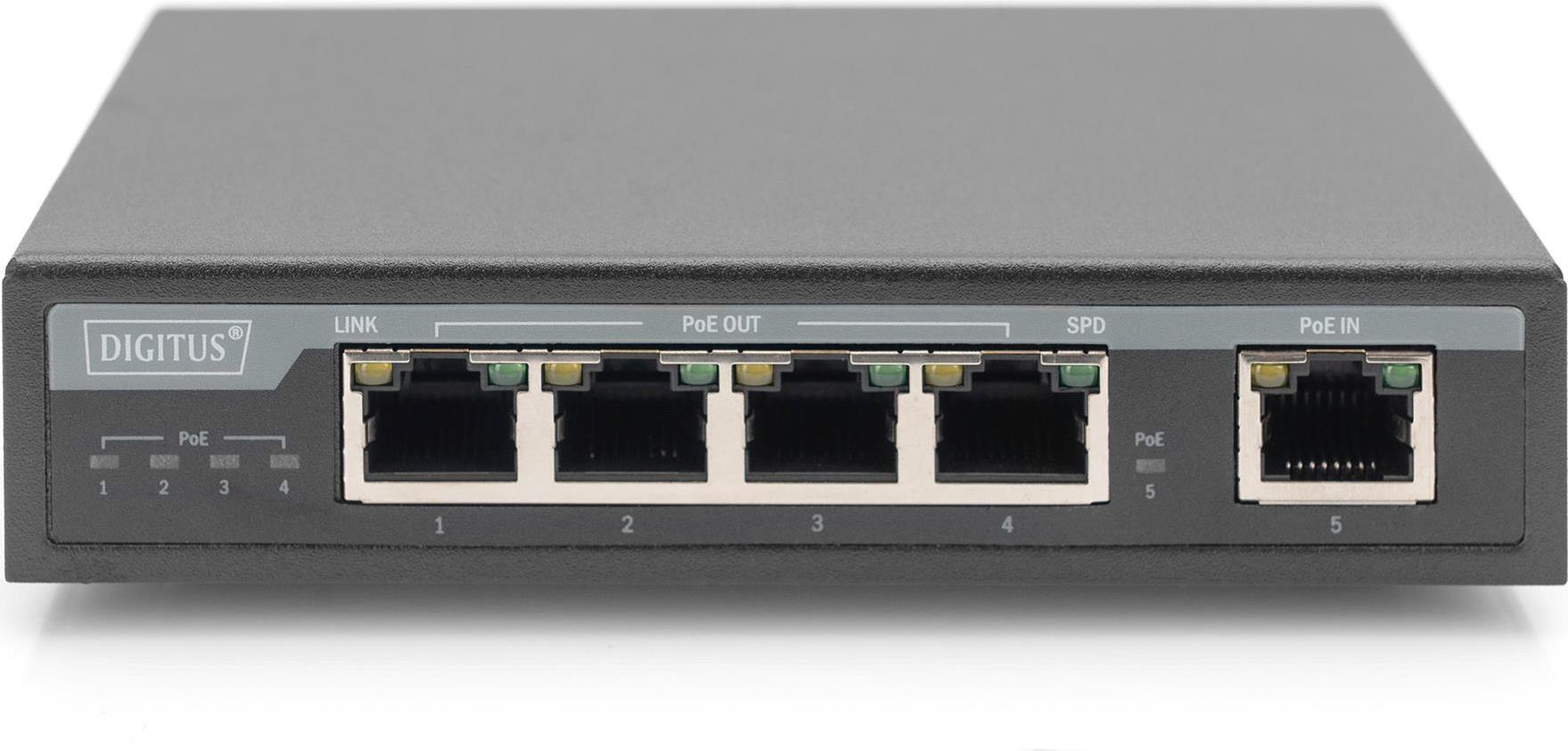 Digitus 4-Port Gigabit 4PPoE Extender - 802.3at - 60 W - Gigabit Ethernet - 10,100,1000 Mbit/s - IEEE 802.3af - IEEE 802.3at - Voll - Cat5e - Schwarz (DN-95128-1)
