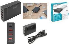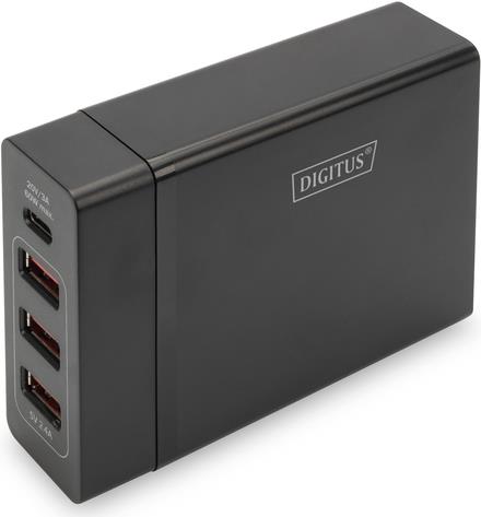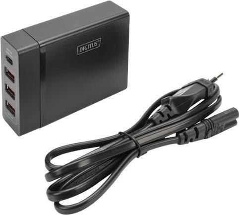 Der 4-Port USB-Ladeadapter, USB Type-C von Digitus® ist die universelle Ladestation für all Ihre Geräte. Der USB-C Ladeport (5-20V/3A/60W max.) mit Power Delivery (PD) 2.0 Funktionalität lädt Ultrabooks, Notebooks, Tablets, Smartphones, mobile Spielekonsolen, etc. schnell und effizient wieder auf. Über die drei USB-A Ladeports (total: 5V/2,4A, jeder Port liefern bis zu5V/2,4A max.) laden Sie jegliche Art von Mobilgeräten wie z.B. Smartphones, Tablets, Power Banks, Lautsprecher, etc. Die Gesamtleistung beträgt 72W.
