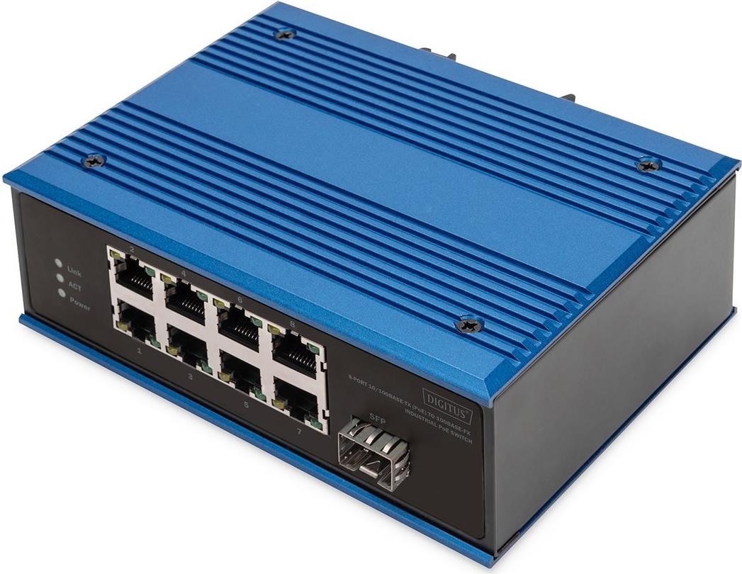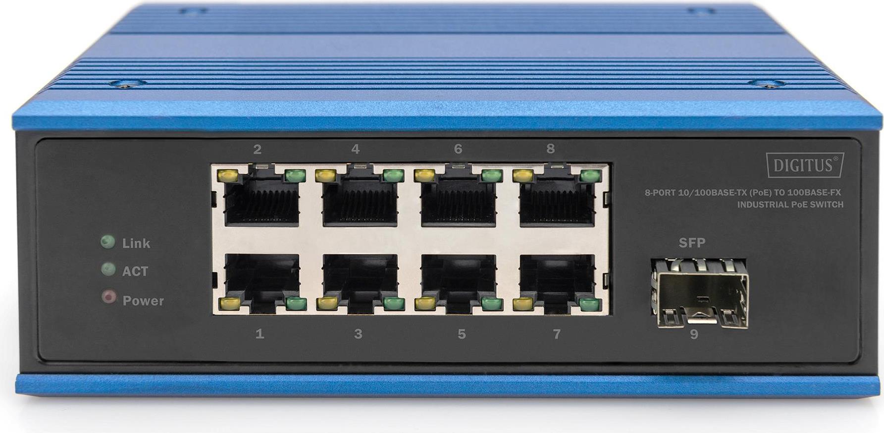 Digitus 8-Port 10/100Base-TX(PoE) to 100Base-FX Industrial PoE Switch - Unmanaged - Fast Ethernet (10/100) - Vollduplex - Power over Ethernet (PoE) (DN-651133)