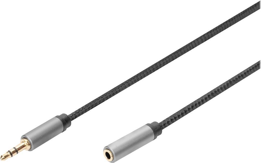 Das Audio Verlängerungskabel von Digitus mit 3,5 mm Klinke auf 3,5 mm Buchse ist für die Verlängerung von Klinkenkabel bestens geeignet. Das Aluminium Gehäuse und das Nylongeflecht sorgen für einen ideal Schutz von außen. Das Verlängerungskabel ist für alle Smartphones, Notebooks und Audio-Player mit einem 3,5 mm Anschluss geeignet.