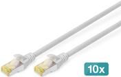 DIGITUS - Patch-Kabel - RJ-45 (M) bis RJ-45 (M) - 3 m - S/FTP - CAT 6a - geschirmt, halogenfrei, geformt, ohne Haken - Grau (Packung mit 10)