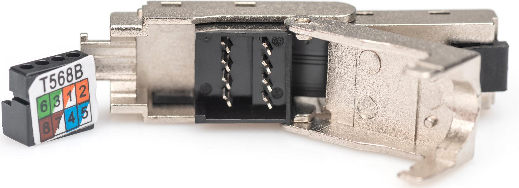 Der abwinkelbare DIGITUS® CAT 6A Stecker zur Feldmontage ist ein moderner und hochwertiger RJ45-Stecker, der sich nicht nur durch die super einfache Anwendbarkeit auszeichnet, sondern dem Feldkonfektionär bei jedem Einsatz stets zuverlässig und zeitsparend zur Seite steht. Die schnelle Montage in nur 60 Sekunden ganz ohne Spezialwerkzeug, sowie die enorme Flexibilität, macht ihn zur perfekten Wahl an allen Einsatzorten. Er eignet sich für sämtliche Netze, von Voice bis 10 Gigabit Ethernet. Zufriedene Kunden durch schnelle und kostensparende Installation, Reparatur und Wartung, sind die logische Folge dieses innovativen RJ45-Steckers. Warum kompliziert, wenn´s auch einfach geht? Überzeugen Sie sich selbst!