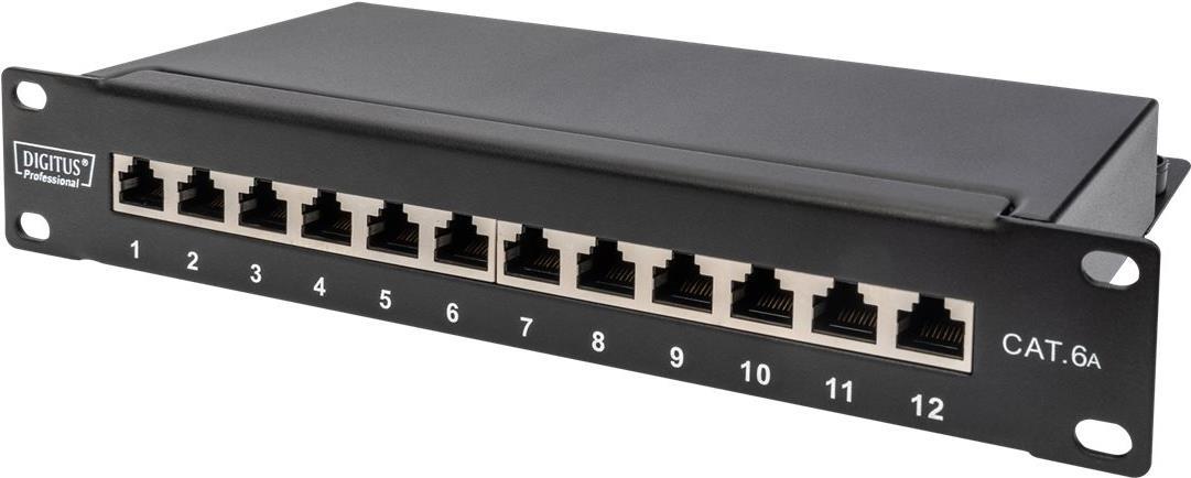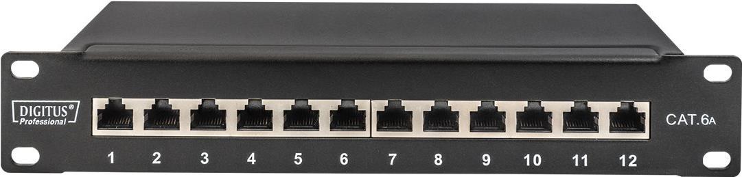 DIGITUS DN-91612S-EA - Patch Panel - Rack montierbar - RJ-45 X 12 - Schwarz, RAL 9005 - 1U - 25,4 cm (10") (DN-91612S-EA)