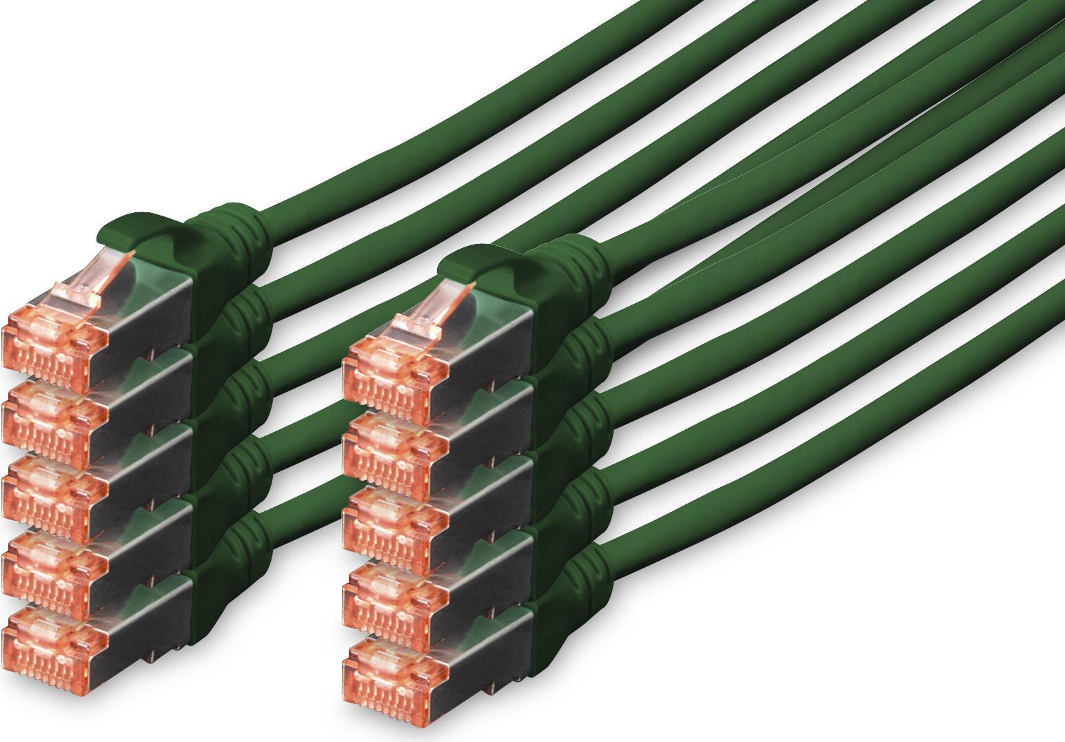 DIGITUS Professional - Patch-Kabel - RJ-45 (M) bis RJ-45 (M) - 3,0m - SFTP, PiMF - CAT 6 - IEEE 802,3 - geschirmt, halogenfrei, ohne Haken, verseilt - grün (Packung mit 10) (DK-1644-030-G-10)