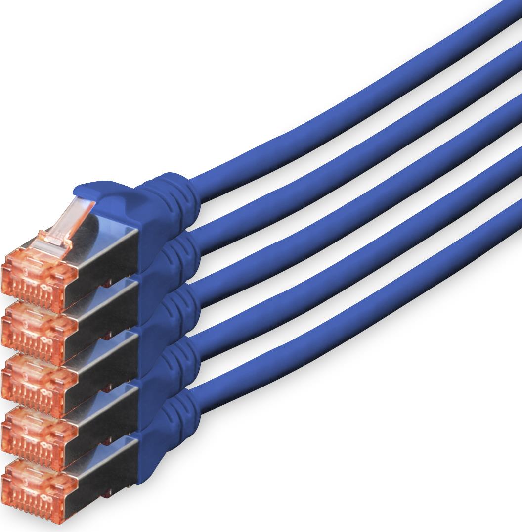 DIGITUS Professional - Patch-Kabel - RJ-45 (M) bis RJ-45 (M) - 10,0m - SFTP, PiMF - CAT 6 - IEEE 802,3 - geschirmt, halogenfrei, ohne Haken, verseilt - Blau (Packung mit 5) (DK-1644-100-B-5)