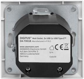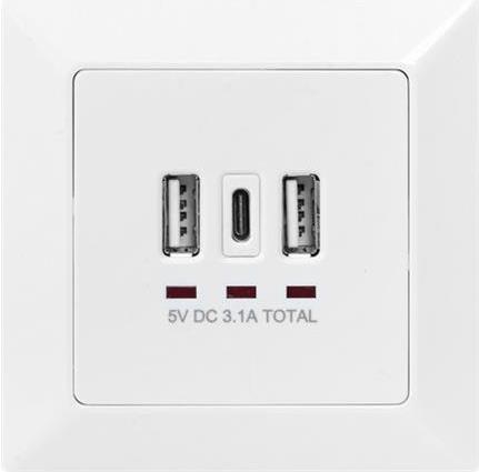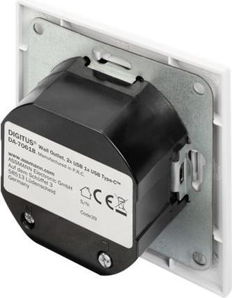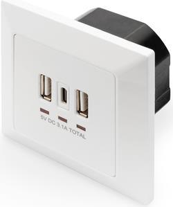 DIGITUS DA-70618 - USB-Ausgang - USB, USB Type C - 2 USB-Anschlüsse, 1 USB-C socket - 3.1 A - RAL 9003, Signal White