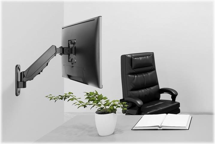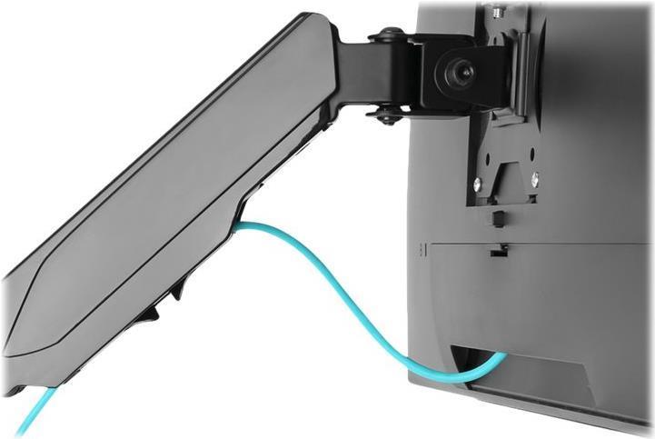 Die universelle Monitor-Wandhalterung von DIGITUS® kann einen Monitor von 17" bis 32" aufnehmen. Die Quick-Release-Funktion erleichtert Ihnen zudem die Installation des Monitors. Die VESA-Halterung wird ganz einfach in die entsprechende Aufnahme geschoben und mit einer Schraube fixiert. Ohne großen Aufwand richten Sie den Monitor nach Ihren Bedürfnissen aus und können ihn schwenken, neigen oder den Monitor selbst drehen z. B. für Hochformat-Monitore. Die Unterstützung der integrierten Gasdruckfeder erleichtert Ihnen die Höhenverstellung des Monitors. Tun Sie sich und Ihrer Gesundheit etwas Gutes, indem Sie den Monitor optimal an Ihren Körper und Ihre Sitzposition anpassen. Zusätzlich lassen sich die Kabel der Monitore ordentlich durch die mitgelieferten Kabelführungen verlegen.