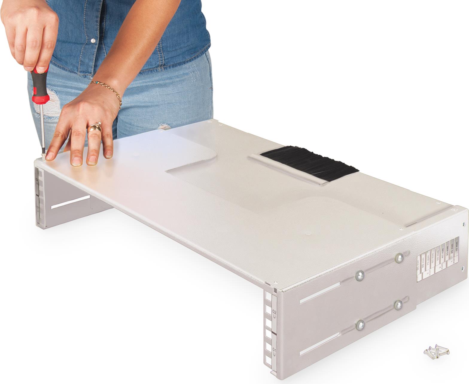 Die Patch-Halter zur Wandmontage werden zur Installation von 483 mm (19")-Komponenten verwendet. Sie sind erhältlich in verschiedenen Höheinheiten und lassen sich stapeln um jeden individuellen Platzbedarf gerecht zu werden. Das verschiebbare Dach- und Bodenblech lässt sich einfach an den Patch-Haltern anbringen und bietet via Bürstenleiste erweitere Kabelführungsmöglichkeiten.