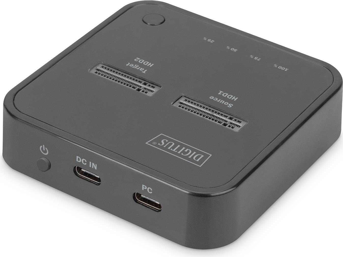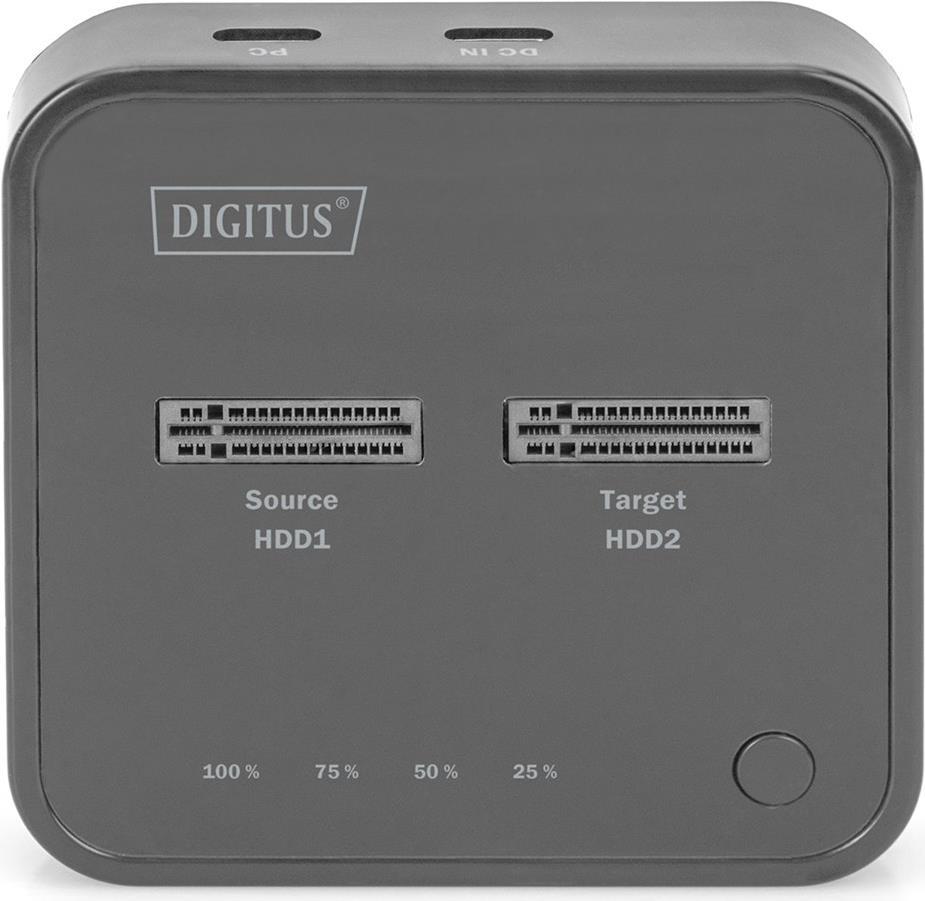 DIGITUS - SSD-Dockingstation mit Datenanzeige, Offline Clone Schächte: 2 - M.2 - M.2 NVMe Card - USB-C 3,2 (Gen 2) - Schwarz (DA-71545)