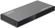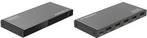 Der HDMI Splitter von DIGITUS® verteilt Audio- und Videosignale Ihres HDMI-Gerätes auf 4 TVs, Monitore oder Beamer in einer Auflösung von UHD 4K/60Hz. Mittels EDID-Management können Sie aus 3 Modi (Copy, Auto, Downscaler) wählen. Die integrierte Downscaling-Funktion unterstützt die Anzeige von 4K-Inhalten auf Full HD Displays, zusätzlich können sowohl 4K als auch Full HD Displays gleichzeitig betrieben werden. Dank der Auto-EDID-Funktion erkennt der Splitter automatisch die angeschlossenen Displays - es sind keine manuellen Einstellungen notwendig. Der Video-Splitter wird mittels Micro USB Kabel mit Strom versorgt z.B. über das Quell-Gerät oder einen USB-Ladeadapter.