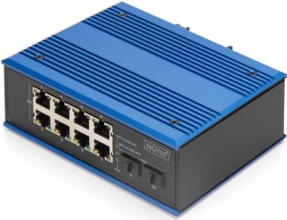 Digitus Industrial 8 + 2 -Port Gigabit Ethernet PoE Switch. Switch-Typ: Unmanaged. Basic Switching RJ-45 Ethernet Ports-Typ: Gigabit Ethernet (10/100/1000), Anzahl der basisschaltenden RJ-45 Ethernet Ports: 8, Anzahl installierten SFP Module: 2. Vollduplex. MAC-Adressentabelle: 4000 Eintragungen, Routing-/Switching-Kapazität: 1 Gbit/s. Netzstandard: IEEE 802.3af. DC input Spannung: 48 - 57 V. Power over Ethernet (PoE) (DN-651151)