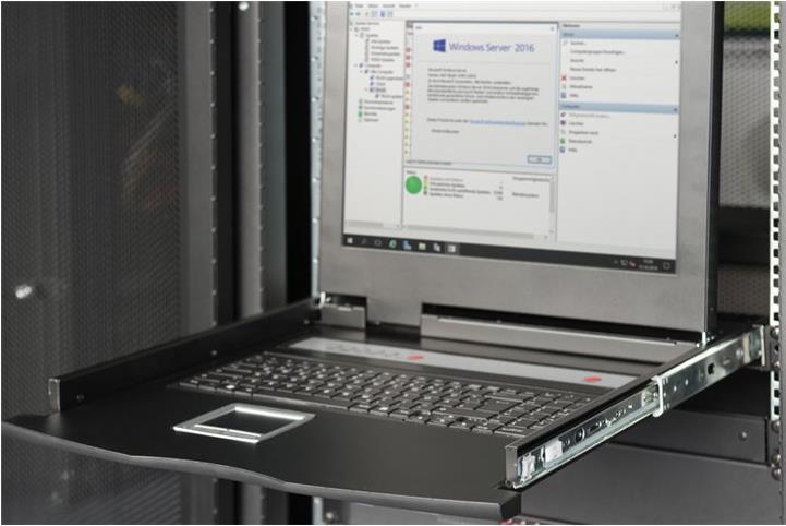Die DIGITUS® 17" TFT-Konsole bietet durch ihre modulare Bauweise eine Vielzahl von individuellen Konfigurationsmöglichkeiten, sodass eine Anpassung auf den Einsatzbereich der Konsole abgestimmt werden kann. Dadurch wir die Konsole kostensparend und ist jederzeit mit weiteren Modulen auf- bzw. umrüstbar. Durch die flexible Konfiguration ist somit eine hohe Zukunftssicherheit der Konsole garantiert. Die modulare Konsole besteht aus einem 17" Monitor, einem 16-Port KVM-Switch, einer Tastatur und dem Touchpad.