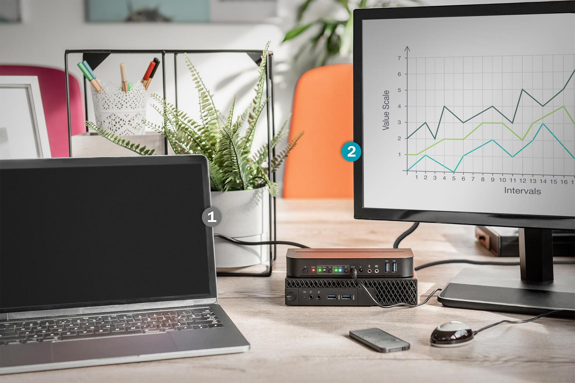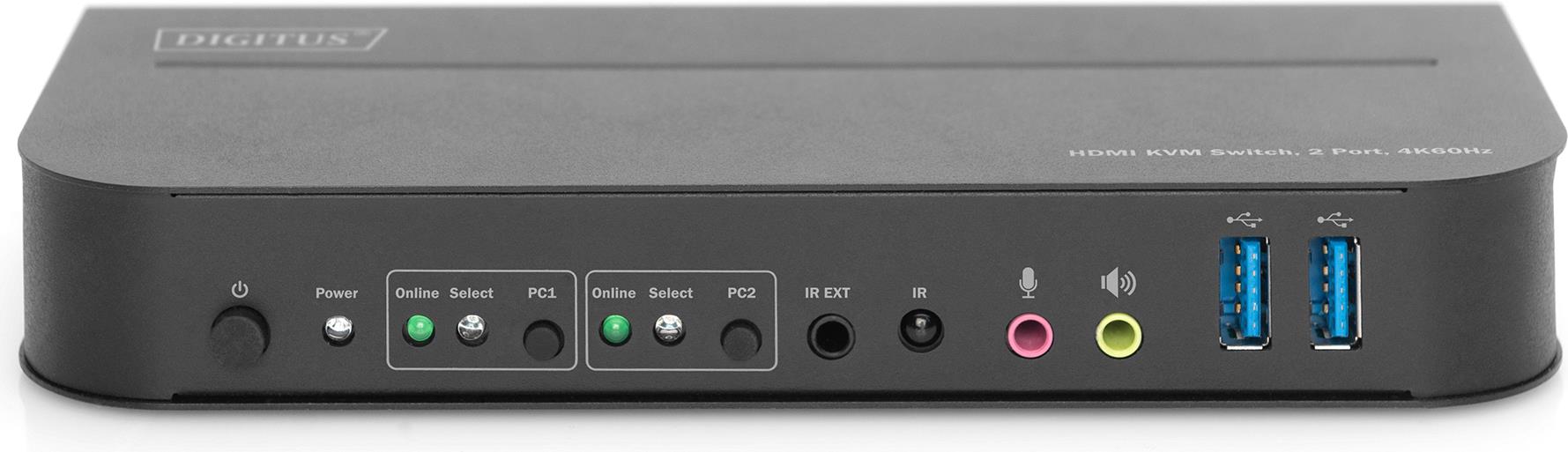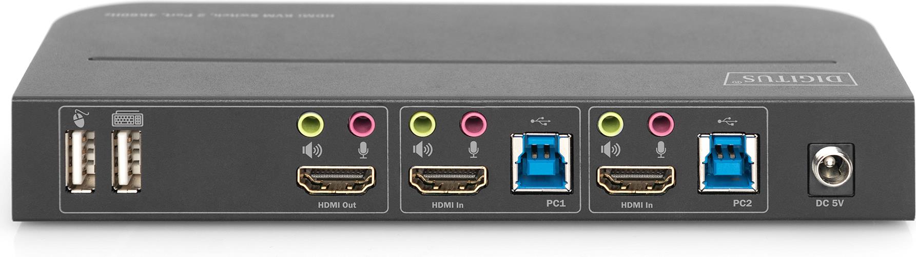 Der DIGITUS® 2-Port KVM Switch ist ein hochleistungsfähiger HDMI-KVM Switcher. Er leitet hochauflösendes Video (in mehreren Auflösungen bis zu 4kx2k@60Hz) und Audio von einer der verschiedenen Quellen zu den Anzeigegeräten. Dieser HDMI-KVM-Switcher verfügt nicht nur über eine Umschaltfunktion per Tastendruck, sondern auch über eine intelligente Funktion sowie eine Hot-Plugging-Funktion.