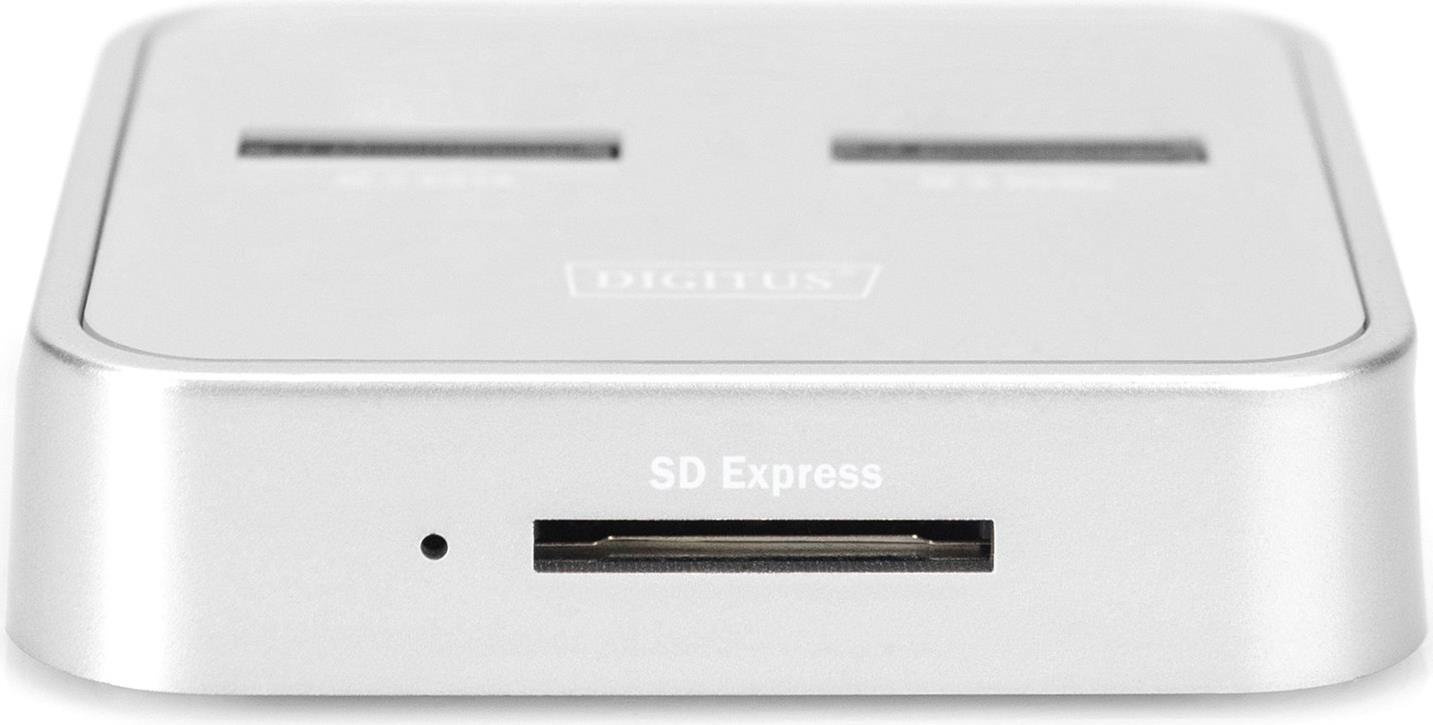 Die 3-in-1 Docking Station von DIGITUS kann M.2 SSDs in NVMe- oder SATA-Technologie aufnehmen, zusätzlich befindet sich ein SD-Express 7.1 Kartenlesegerät mit höchsten Datentransferraten an Board. Verwalten Sie M.2 Datenträger mit bis zu 4 TB je Einschub und zusätzlich SD-Karten bis 2 TB. Unterstützt werden NVMe SSDs mit B+M Key & M-Key sowie SATA SSDs mit B+M-Key, jeweils in den Formaten 2242, 2260, 2280 & 22110. Erweitern Sie auf einfache Weise die Speicherkapazität zahlreicher USB-C Geräte wie PC, Notebook, TV-Geräte, Spielekonsolen oder Router.