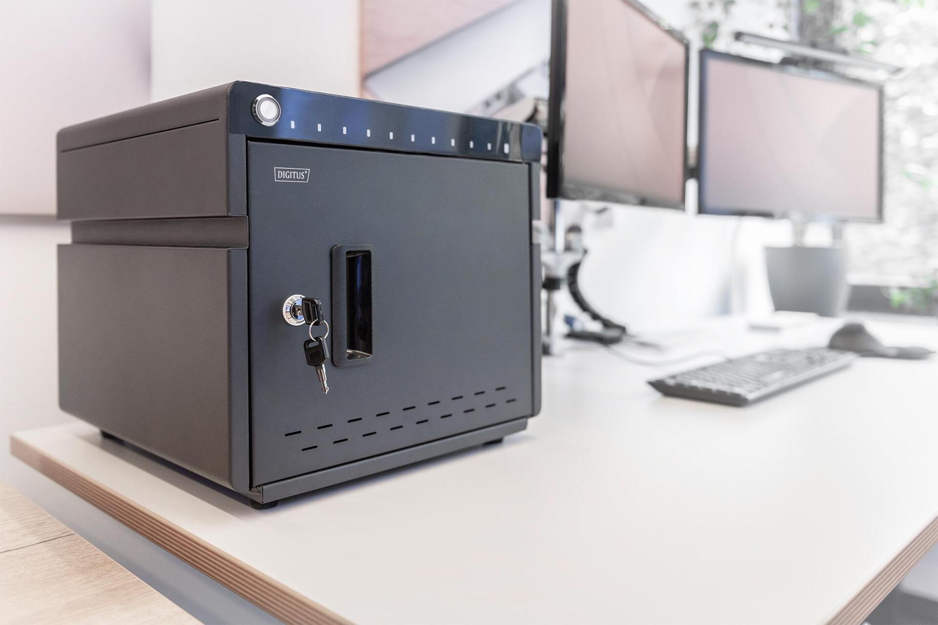 DIGITUS DN-45004 - Schrankeinheit - für 10 Notebooks/Tablets - UV cleaner, USB-C, mobile, charging - verriegelbar - ABS-Kunststoff, kaltgewalzter Stahl - Schwarz, RAL 9005 - Bildschirmgröße: bis zu 35,6 cm (bis zu 35,60cm (14")) - Schreibtisch - Ausgang: 5 / 9 / 12 V