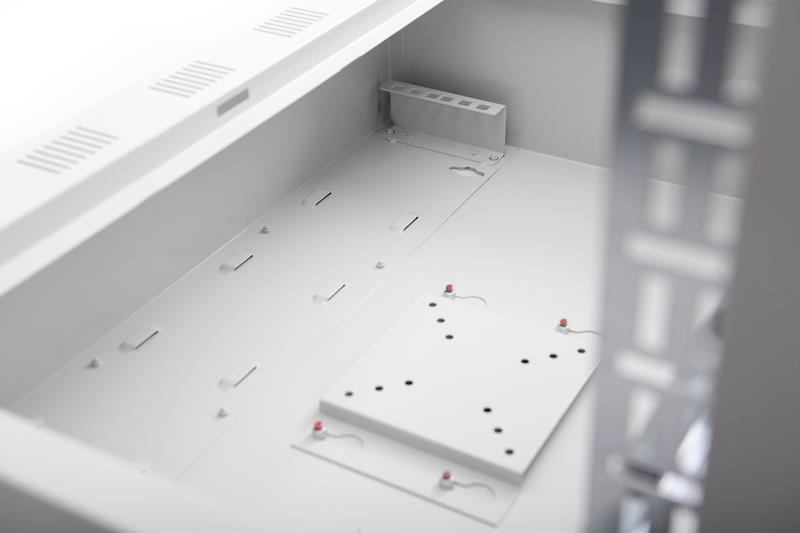 Das DIGITUS® Wandgehäuse schützt Ihr Videokontrollsystem vor unberechtigtem Zugang. Es kann für alle Anwendungen in Bereichen wie Netzwerk, Sicherheit, DVR, Sound, Funk oder Verkabelung genutzt werden. Mit den Montagehalterungen können Sie ihr Gerät einfach fixieren, ob 482.6 mm (19)-einbaufähig oder nicht. Gummidämpfer an der verstellbaren Fixierungshalterung halten das Gerät an seiner exakten Position und bewahren vor Schäden beim öffnen und schließen der Tür. Zusätzlich lässt sich an der 12-Halterung an der inneren Rückseite ein Monitor befestigen. Um Ihre Komponenten mit Strom zu versorgen befindet sich an der inneren Oberseite eine 482.6 mm (19) 2HE Halterung zur Befestigung einer Steckdosenleiste. Mehrere Kabeleingänge an jeder Seite machen ein geordnetes Kabelmanagement möglich.