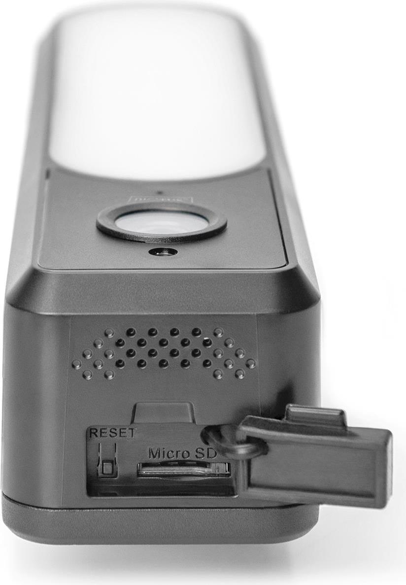 Die wetterfeste WLAN-Außenkamera von DIGITUS® ist ausgestattet mit 21 ultra-hellen Flutlicht-LEDs und einer Weitwinkel-Linse von 90° mit gestochen scharfer Full HD-Auflösung. Die automatische Umschaltung von Tag- auf Nachtsicht bietet selbst bei absoluter Dunkelheit einen klaren Blick. Dank WLAN-Betrieb sind Sie 100% flexibel was den Aufstellort betrifft, dazu müssen Sie die Kamera lediglich innerhalb der Reichweite Ihres Drahtlos-Netzwerks positionieren und mit Strom versorgen, alternativ kann auch eine Netzwerkverbindung per Kabel über den RJ45-Anschluss hergestellt werden. Über Amazon Alexa und Google Assistant lässt sich das Kamerabild per Sprachbefehl auf entsprechenden Amazon- und Google-Displays anzeigen. Die Kamera ist zudem in der Lage, Bewegungen im Bildbereich zu erkennen und eine entsprechende Push-Benachrichtigung auf Ihr Smartphone zu schicken. Ein zusätzlicher Alarmton, der über den integrierten Lautsprecher der Kamera ausgegeben wird, lässt sich ebenfalls aktivieren. Der vorhandene MicroSD-Kartenschacht lässt sich mit Speicherkarten von bis zu 128 GB ausstatten, sodass die Aufnahmen auch über einen längeren Zeitraum gespeichert und jederzeit abgerufen werden können. Durch die Zwei-Wege-Audioübertragung können Sie mit Personen vor der Kamera kommunizieren. Das Livebild der Kamera und sämtliche Einstellungen lassen sich ganz bequem per App aufrufen und einstellen - unabhängig von Ihrem aktuellen Standort (Mobilfunk-Empfang vorrausgesetzt). Die Kamera ist für eine Vielzahl an Einsatzmöglichkeiten im Außenbereich konzipiert, beispielsweise für Haus, Garten, Garage oder Carport. Dank der mitgelieferten Wandhalterung kann die Kamera individuell ausgerichtet und befestigt werden. Setzen Sie auf Sicherheit und Flexibilität mit der sprachgesteuerten Full HD-Außenkamera von DIGITUS®.