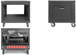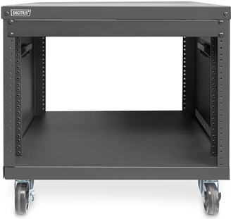 Die 19-Zoll Racks von DIGITUS® sind dank ihrer 19-Zoll Gewindelochung universell einsetzbar. Audio Video Zubehör (AVS) oder aktive- und passive Netzwerkkomponenten können im Handumdrehen, ohne den Bedarf von Käfigmuttern, montiert werden. Die Gewindelochung der Profile erlaubt die Kompatibilität mit U.S.- oder EU Schraubengrößen. Beide Schraubentypen sind im Lieferumfang enthalten. Eine beanspruchbare Stahblechkonstruktion sorgt für die notwendige Robustheit und erlaubt Traglasten von bis zu 136 kg. Lüftungsschlitze an beiden Seitenwänden sorgen für eine passive Kühlung der zu verbauenden Komponenten. Ausgestattet mit Rollen sowie Tragegriffen, sind die 19-Zoll Racks bei Bedarf beweglich und somit optimal positionierbar. Die Lieferung erfolgt als unmontiertes Flatpack um den Logistikaufwand zu optimieren. Der Aufbau des Racks ist dank des beiligenden Schraubendrehers sowie der einfachen Konstruktion schnell und einfach zu erledigen. Das Portfolio umfasst verschiedene Größen um jeder Anforderung gerecht zu werden.