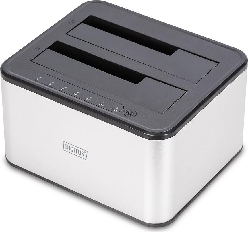 Erleben Sie mit der DN-71540-2 Dual Bay HDD Clone Station eine bequeme und leistungsstarke Lösung für Ihre Speicheranforderungen. Dieses vielseitige Gerät ermöglicht das einfache Lesen, Klonen und Sichern Ihrer Daten von 2,5" und 3,5" Festplatten sowie anderen externen Speichergeräten. Dank der USB 3.0 High-Speed-Verbindung und der Unterstützung für SATA3-Festplatten bietet die Clone Station beeindruckende Übertragungsgeschwindigkeiten und Zuverlässigkeit.