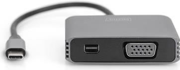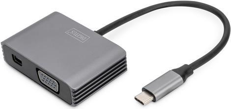 Mit dem USB-C zu Mini DisplayPort + VGA-Adapterkabel von DIGITUS® können Sie einen Monitor oder Fernseher mit Mini DisplayPort- oder VGA-Anschluss an den USB-C Anschluss Ihres Notebooks oder Tablets anschließen sowie Audio an Ihr Soundsystem übertragen. Es werden keine zusätzlichen Adapter benötigt. Je nach Quellgerät unterstützt dieses Kabel Auflösungen bis zu 4K / 30 Hz. Dank Plug and Play müssen Sie keine Treiber installieren oder Einstellungen vornehmen - einstecken und sofort loslegen. Sparen Sie sich zusätzliche Adapter oder Konverter und verwenden Sie das DIGITUS® USB-C zu Mini DisplayPort + VGA-Adapterkabel.