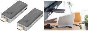 Mit dem Wireless HDMI Extender Set übertragen Sie kabellos HDMI Video- und Audiosignale über eine Distanz von bis zu 50 m bei freier Sicht. Die Bedienung und Installation hierbei ist kinderleicht. Echtes Plug & Play - Einstecken und los geht´s. Sender & Empfänger können über den HDMI-Anschluss Ihres Geräts mit Strom versorgt werden (0,5A erforderlich), alternativ (zusätzlich) mit dem beliegenden Micro USB-Kabel über den USB-Anschluss ihres Notebooks, PCs, etc. Dank der kompakten Bauform von Sender und Empfänger lässt es sich leicht, schnell und individuell installieren - die perfekte Lösung für Meeting-, Konferenz- oder Kongressräume. Aber auch im privaten Bereich lässt es sich für spontane oder kurzzeitige Installationen nutzen.
