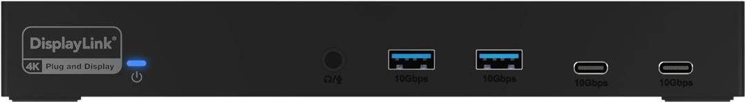 | Leistungsmerkmale | DisplayLink DL-9650-Chipsatz, DisplayPort Alt Mode, Ein-/Ausschalter, Passivkühlung, UASP-Übertragungsprotokoll, Slot für Sicherheitsschloss (Kabelschloss getrennt erhältlich), VESA 100 x 100 mm, VESA 75 x 75 mm, LED-Anzeige, 100W Power Delivery 3.0 |