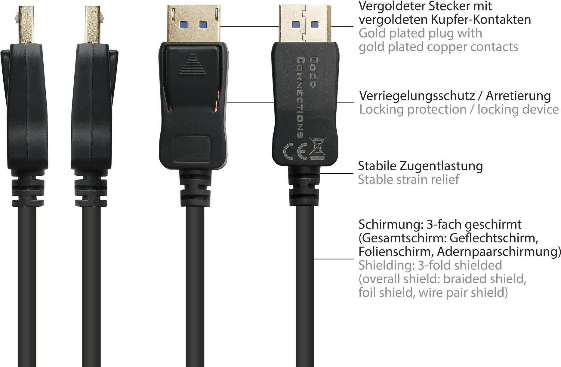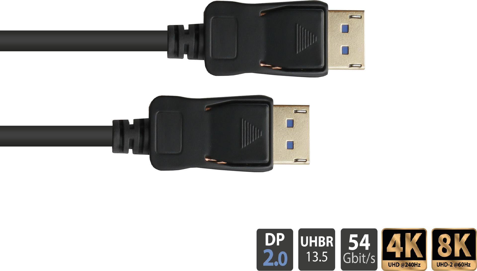 DisplayPort 2.0 Kabel, 54 Gbit/s, UHBR 13.5, 4K @240Hz / 8K @60Hz, Kupferleiter, schwarz, 3m, Good C (DP20-030)