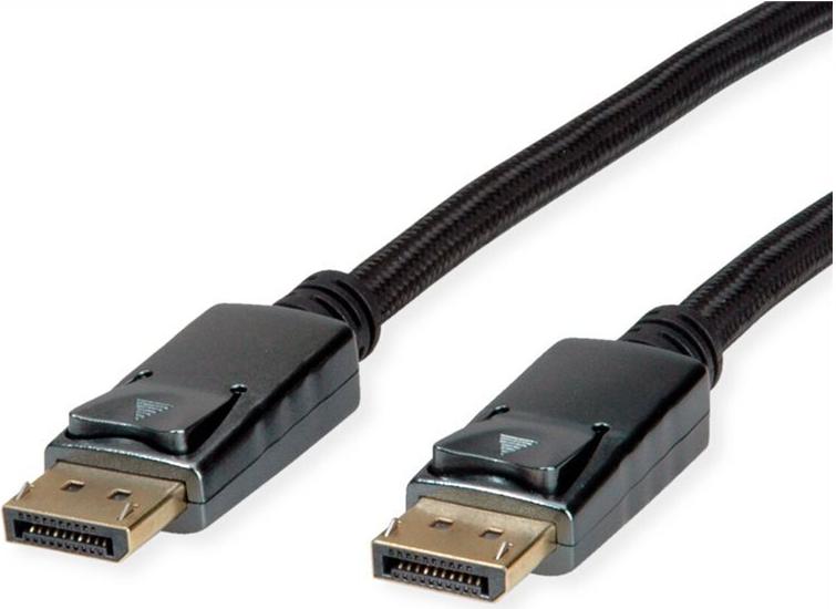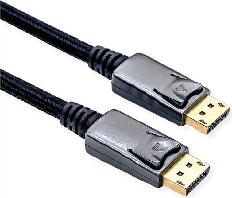 ROLINE DisplayPort Kabel mit beidseitigem DP-Anschluss für das Verbinden eines Ultrabooks, Notebooks/Laptops oder PCs mit einem Monitor, TV, Beamer oder Projektor - für Bildschirmübertragungen in exzellenter Qualität mit einer 8K Auflösung von bis zu 7680x4320 @60Hz! DisplayPort ist ein universeller Verbindungsstandard für die Übertragung von Bild- und Tonsignalen, der in der Computerbranche, der Industrie und der modernen Hausverkabelung weithin bekannt und geschätzt ist. Die Anwendungen umfassen hauptsächlich den Anschluss von Monitoren oder Projektoren an Computer, Notebooks/Laptops, Ultrabooks, NUCs und ähnliche Geräte. Der Steckverbinder benötigt weniger Platz als VGA oder DVI und eignet sich daher besser für tragbare Geräte für zwei Anschlüsse an einer Grafikkarte (auf einer Slotplatte). DisplayPort v1.4 unterstützt Display Stream Compression 1.2a (DSC), Vorwärtsfehlerkorrektur und den HDR10-Standard. DP v1.4 kann eine maximale Auflösung von 8K (7680x4320) @60Hz oder 4K (3840x2160) @120Hz erreichen. Das robuste Nylonschutzgeflecht schützt das DisplayPort Kabel effektiv und setzt es optisch in Szene Das praktische Steckerdesign verhindert das Herausrutschen des Kabels aus der DisplayPort-Buchse und garantiert eine stabile Videoübertragung.